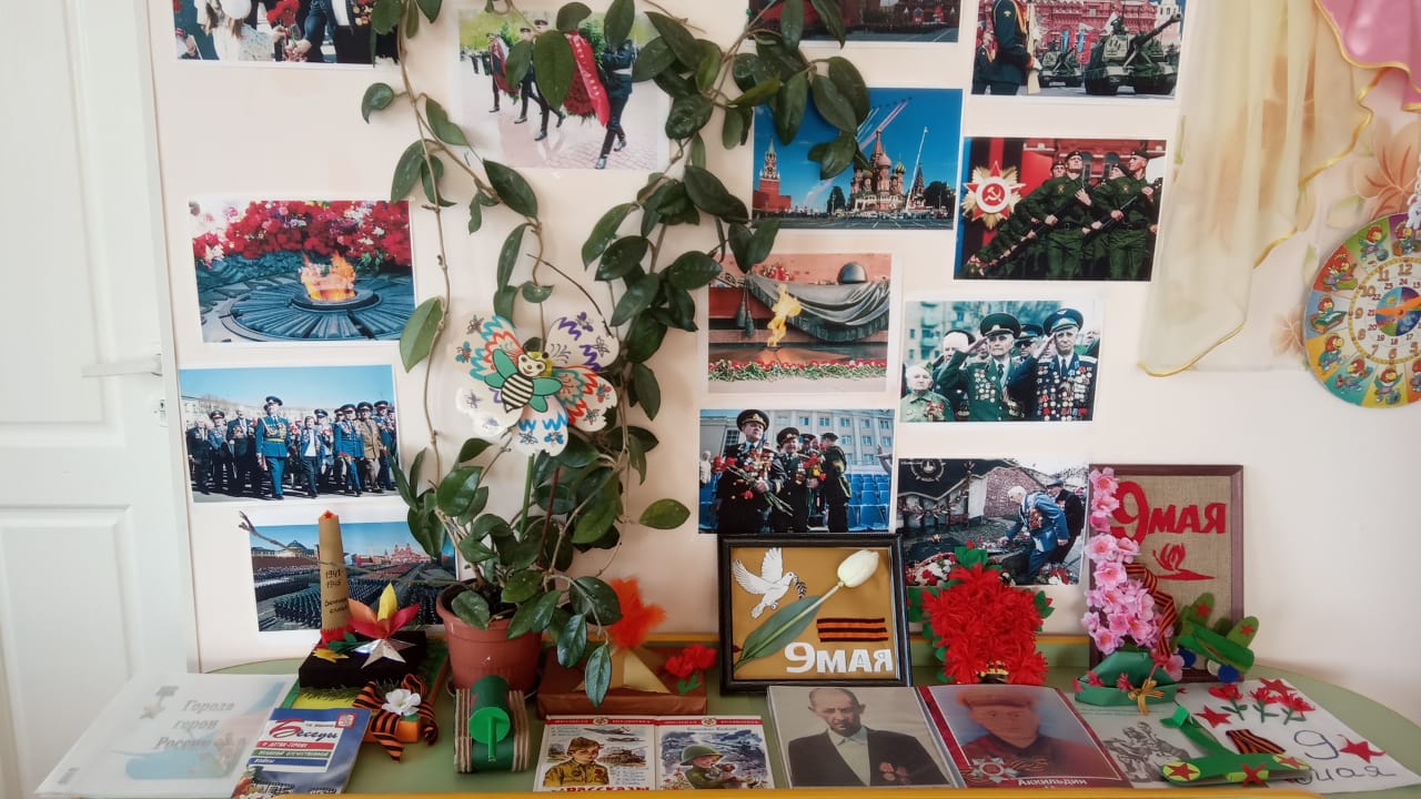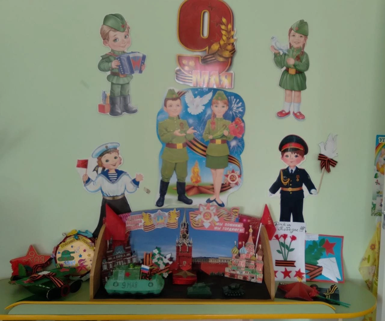 В группах оформляются выставки детских рисунков, патриотических уголков, а конкурс творческих работ «Великой Победе посвящается» стал итогом этих мероприятий. Воспитатели и педагоги приложили максимум усилий, чтобы мальчики и девочки поняли, что такое война и гордились подвигами наших солда